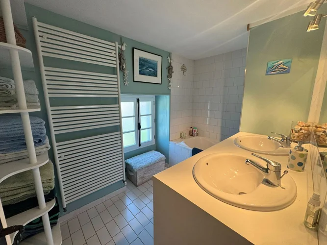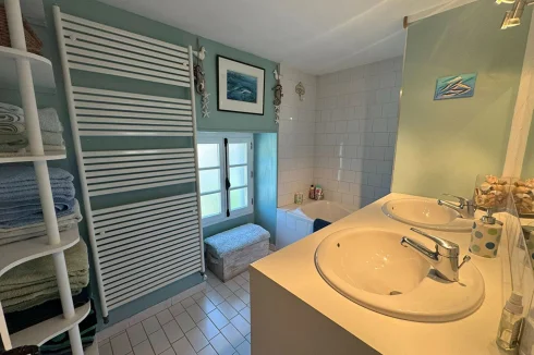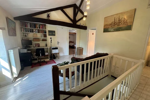 From the hallway a traditional oak staircase leads to the first-floor landing, which benefits from ample natural light and offers space for an office or cozy reading nook. There are four good-sized bedrooms, one with an en-suite bathroom, In addition there is large family bathroom equipped with both a bath and shower. The property also includes a traditional cellar, perfect for storing wine to enjoy on the terrace during the summer.