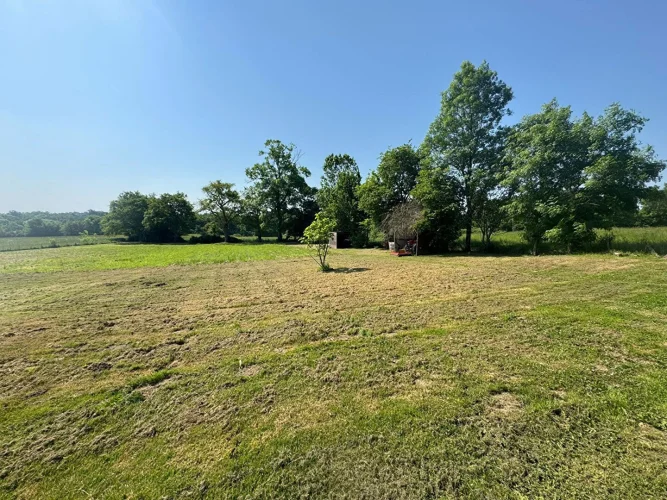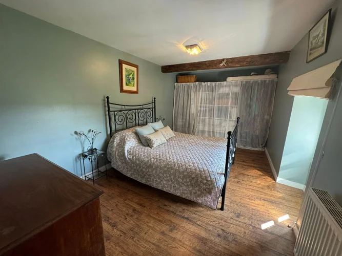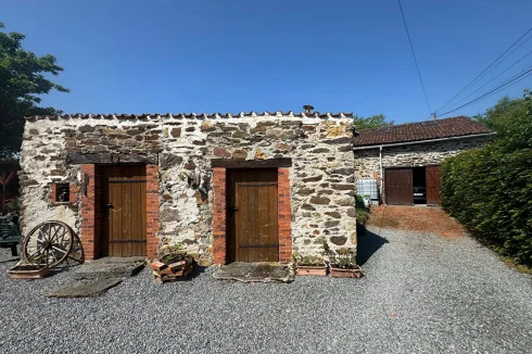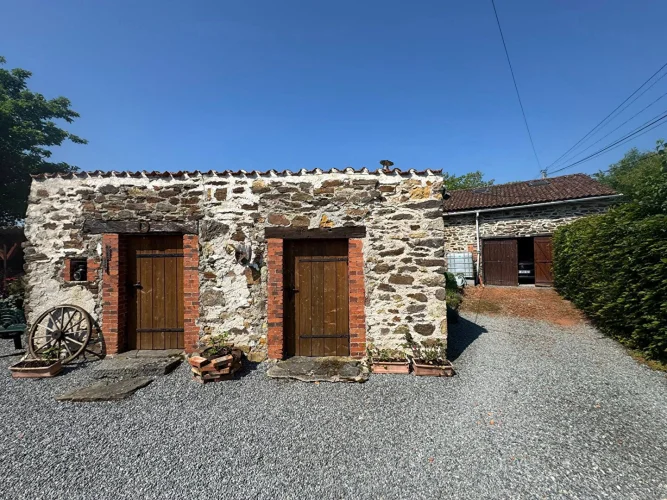 The outside of the property is equally delightful. Upon arrival, you are greeted by a double-access driveway, outbuildings, and a spacious barn garage with electricity and water already connected. This barn could easily be transformed into a guesthouse (gîte) or a large family annex. The front borders feature mature shrubs and a gravel driveway, leading through double gates to the hangar and the rear of the property.