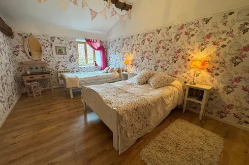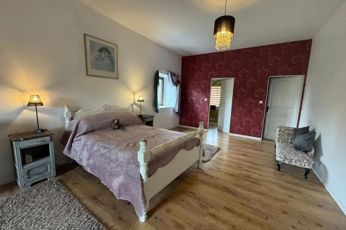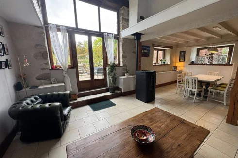 Set in the heart of a peaceful hamlet just eight minutes from the thriving town of Bellac, this remarkable barn conversion offers 220 m² of beautifully appointed living space on a generous 2,896 m² plot with landscaped gardens and paddock. Renovated to the very highest standard, the property combines style, comfort, and energy efficiency, presenting the kind of home you might expect to see featured on Grand Designs.