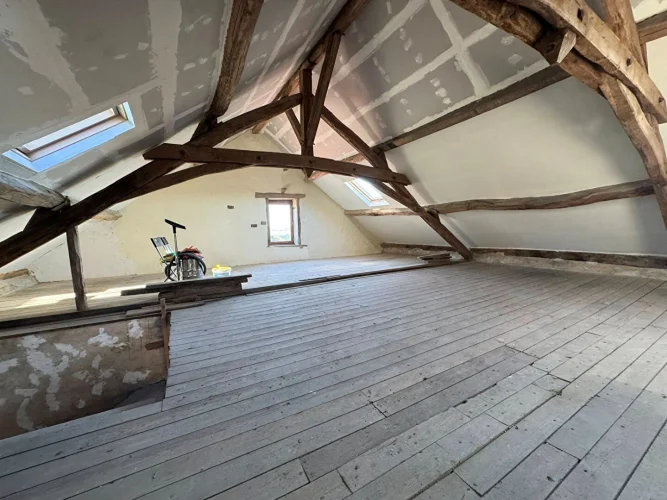 Situated in a peaceful and picturesque Creusois hamlet, just fifteen minutes from the town of Guéret, this impressive property is a true hidden gem. With its elegant façade, new roof, and most of the major structural work already completed, it now awaits the second stage of renovation to bring it fully to life.