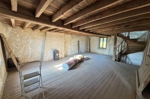 While there is still work to be completed, all the heavy and costly tasks have already been done, including the new roof, structural repairs, treated beams, restored woodwork, and replaced floors. What remains are the final connections and finishing touches: connection to mains water and electricity, installation of a septic tank, and the fitting of kitchen, bathrooms, and decoration.