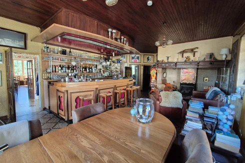 Completing the ground floor is a large salon/bar again with double aspect windows and doors leading to the front and side terrace and a traditional fireplace, just lovely!