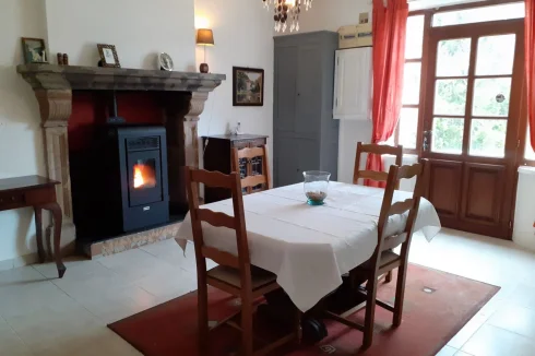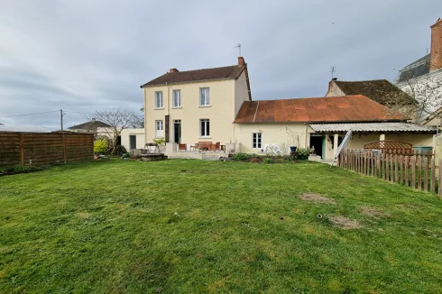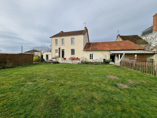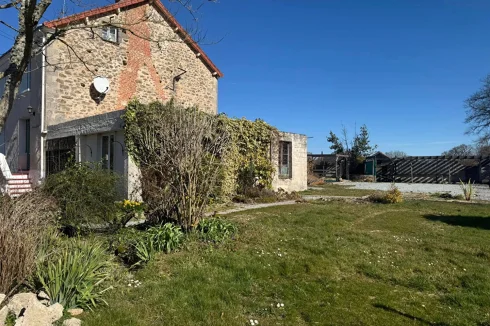 Just off the centre of Saint-Léger-Magnazeix is this fabulous detached property ready to move into. The entrance hall leads to the spacious kitchen (many appliances included) and also the large dining room, equipped with a recently installed pellet burner set in a charming stone surround with mantlepiece. Following on from this is the lounge, with its original fireplace and wooden floor. From the entrance hall, the beautiful wooden staircase leads to the first floor where there are 3 good sized bedrooms (all with wooden floors), 2 of which have en-suite shower rooms with WC and original fireplaces. There is also a further bathroom with washbasin and separate WC. A second staircase leads to the huge, fully insulated, boarded attic. Under the house is a cellar, part of which is used as a laundry room. Outside, at the rear, there is a split-level terrace and a further covered terrace overlooking the pretty enclosed garden with a well. A door leads to the adjoining workshop (approx 95m²) which has double doors to the front of the property and an upper level of the same size. To the right of the property is a further storage area, a separate WC with sink and a further room of 33m². This is a fabulous property which benefits from double glazing throughout and mains drainage and is a must see. (5.96 % fees incl. VAT at the buyer's expense.)