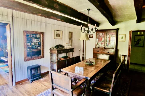 One the ground floor - beautiful spacious kitchen diner including an AGA, dining room adjacent to the kitchen, comfortable living room with south and east windows and an effective wood-burner.