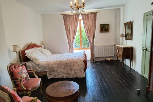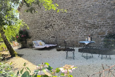 At the back of the house is almost 4500 m2 of garden and woodland which has the most magnificent view of mount Ambazac and beyond. Another seating area has been placed within the woods offering seclusion and shade.