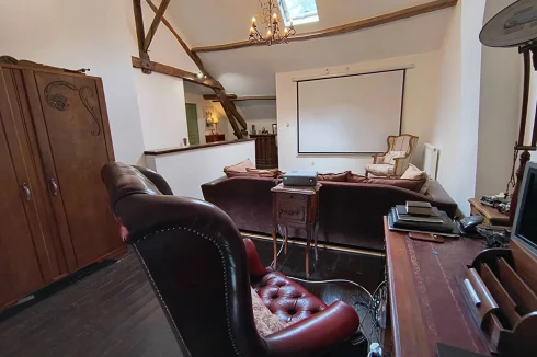 Continue to the third floor you will find a cinema room, another large bathroom, again with a roll top bath, and another large bedroom with a walk in wardrobe.