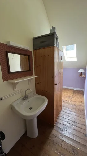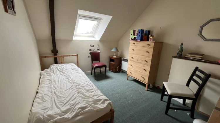 In a complicated world, I think it's good to keep things simple. This house is not complicated. You buy it, at a very good price, do the necessary work. Mainly the refresh, the decoration, a new bathroom, etc. Then you have a beautiful house to live in. It's simple. Even the house is simple. You enter the large living/dining room with fireplace and wood burner. You access the separate kitchen, with window to the front, and the bathroom with toilet. Upstairs, there are 3 bedrooms, 2 of which are doubles, and a small storage room, which could be used as a dressing room. Outside, there is no land attached to the house, enough space at the front for a table and chairs. But, 50 meters along the small path, there is land, enough to do everything you want. Flowers, vegetables, chickens, swimming pool...... The house is close to the small village of Langast. A 5 minute drive to the larger villages of Plessala, or Plouguenast with all daily amenities. Loudeac and Lambelle are not far away if you want larger towns. The beautiful beaches of Brittany can be reached in less than an hour. Come and take a look and unlock the potential of this house (8.70 % fees incl. VAT at the buyer's expense.)