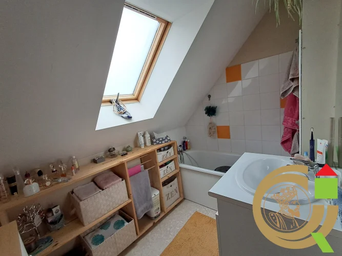 In a residential area, we offer this 55 m² house with a ground floor entrance hall, a 23 m² living room, a 6 m² kitchen, and a toilet. Upstairs, there are two bedrooms and a bathroom.