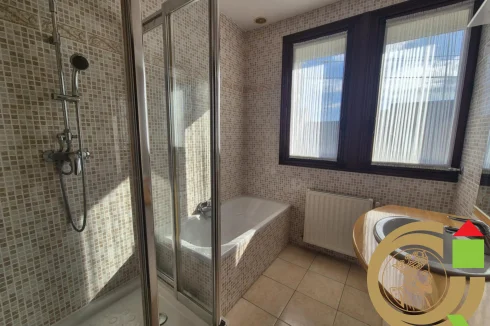 It comprises a ground floor with a hallway, a toilet, a living room, and a kitchen. On the first floor, you will find a landing, two bedrooms, a bathroom with a shower and bathtub, and a dressing room (or office, depending on your preferences).