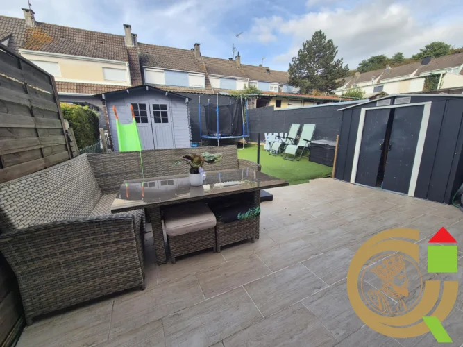 Exclusively at Charles Quint Immobilier: a lovely 87m² house located in a quiet neighborhood of Etaples, near the forest. This house features a ground floor hallway, a separate toilet, a 36m² open-plan living room including a living/dining room and a fully equipped kitchen, and a separate laundry room. On the first floor, there are three bedrooms (10m², 14m², 10m²) and a bathroom with a shower and bathtub. Outside, a 26m² terrace and a garden with a shed complete this property. The house is in perfect condition. Heating is provided by town gas and the roof is made of concrete tiles. Call our agents to arrange a viewing.
