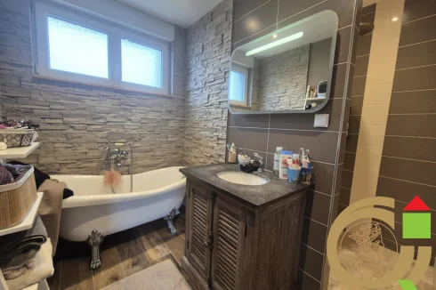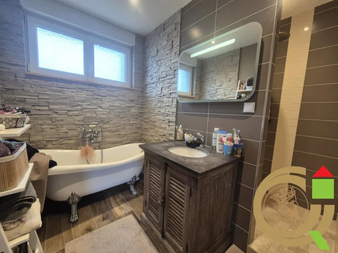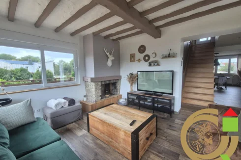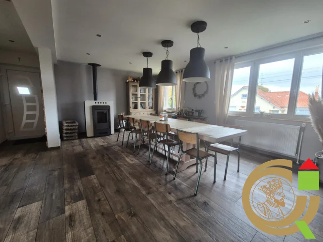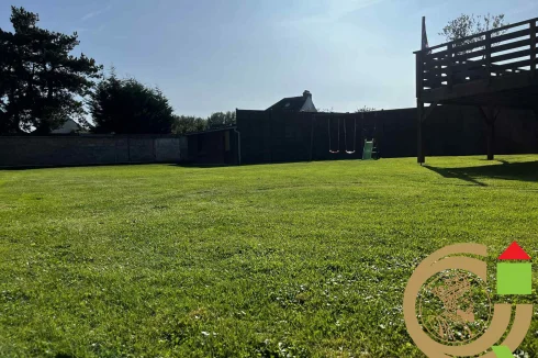 Outside, there is a 1,250 m² garden with a 46 m² terrace on the same level as the living room to fully enjoy the sunshine, and a pétanque court. This property also has an outbuilding with independent access. The house has a full basement with a garage area (motorized door). The house is in perfect condition / no work required, tastefully decorated. Heating system with a latest-generation pellet stove also providing heat distribution upstairs + a wood-burning fireplace.