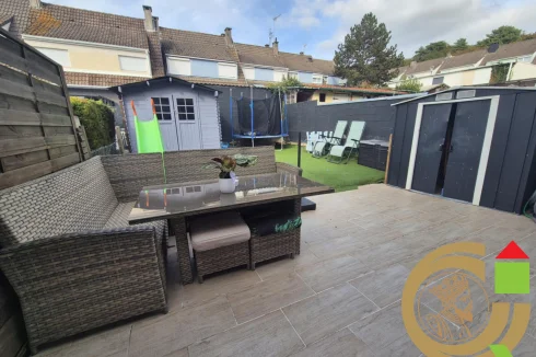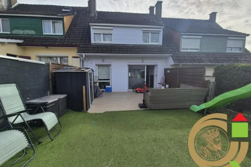 Exclusively at Charles Quint Immobilier: a lovely 87m² house located in a quiet neighborhood of Etaples, near the forest. This house features a ground floor hallway, a separate toilet, a 36m² open-plan living room including a living/dining room and a fully equipped kitchen, and a separate laundry room. On the first floor, there are three bedrooms (10m², 14m², 10m²) and a bathroom with a shower and bathtub. Outside, a 26m² terrace and a garden with a shed complete this property. The house is in perfect condition. Heating is provided by town gas and the roof is made of concrete tiles. Call our agents to arrange a viewing.