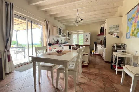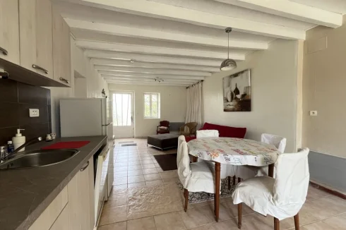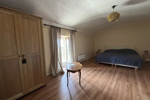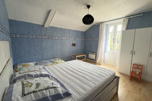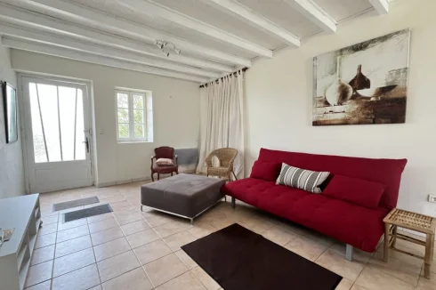 A separate and recently renovated gîte offers excellent potential for guest accommodation or holiday rentals. It includes a large open-plan kitchen and living area, two bedrooms, and shower room, all bathed in light. The kitchen leads on to a private garden and terrace area.
