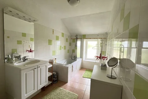 Upstairs, three well-sized double bedrooms are accompanied by two bathrooms, a laundry room, and a separate WC, offering practical yet comfortable living.