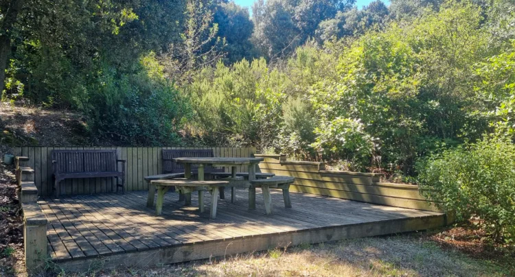 A sunk-in pool set into the decking, perfect for cooling off while enjoying the woodland backdrop.
