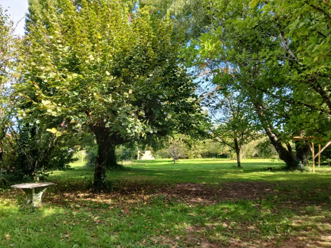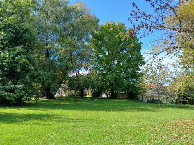 The garden of 3000m² is completely fenced with trees and lawns and the field beyond is 10,000 m² (over 3 acres) .