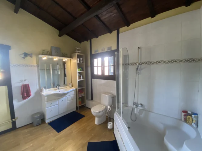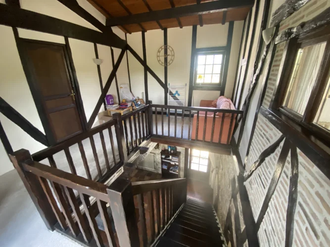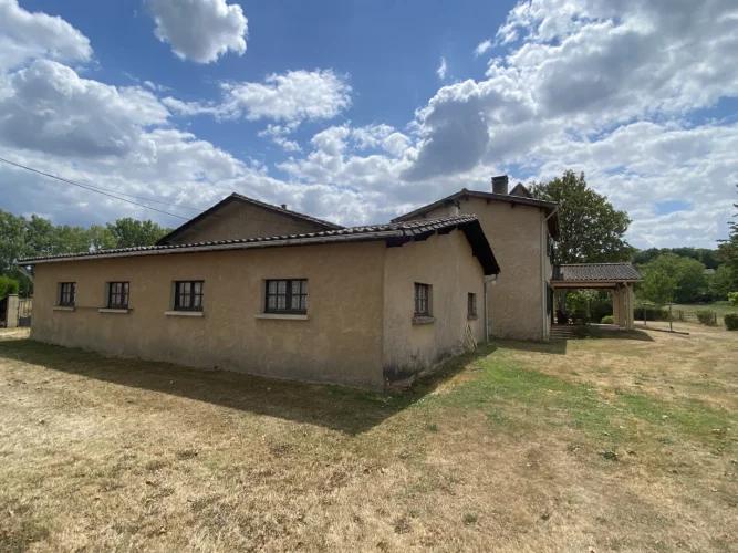 On the edge of a lovely village with a restaurant, this delightful home features a kitchen that opens onto a dining room, a spacious living room with a charming mezzanine, four bedrooms (two of which are conveniently located on the ground floor), and two bathrooms.. An attached garage provides handy storage space. All of this is set on a plot of about 5000m², offering wonderful opportunities for outdoor enjoyment.