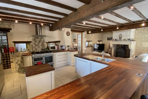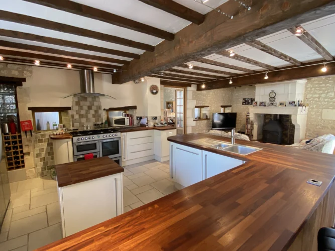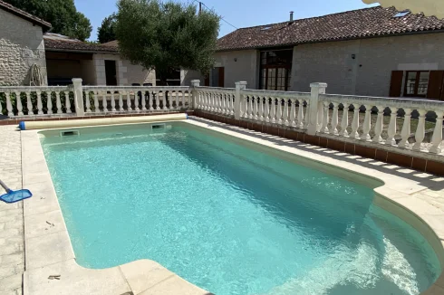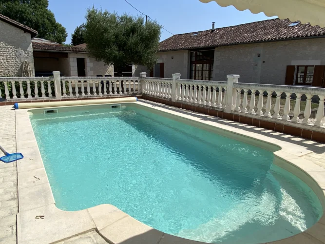 Nestled near Chalais, and conveniently within walking distance to local shops, this expansive 4-bedroom barn conversion beautifully marries character with comfort and charm. Every original feature has been lovingly preserved.The generously sized kitchen is an entertainer's dream, while a mezzanine level offers stunning views over the light-filled, double-height living and dining areas. Two ground-floor bedrooms open directly onto the garden, and each of the four bedrooms boasts its own exquisitely appointed en-suite bathroom.The property is double glazed throughout. The underfloor heating is supplemented by radiators and wood burners.An attached outbuilding provides ample space for storage and dedicated workshop. The swimming pool area, privately situated within the rear garden, offers a serene retreat.Whether you're looking fora peaceful holiday retreat or a permanent home, this property is perfectly positioned to enjoy the natural beauty and relaxed lifestyle of the Charente.