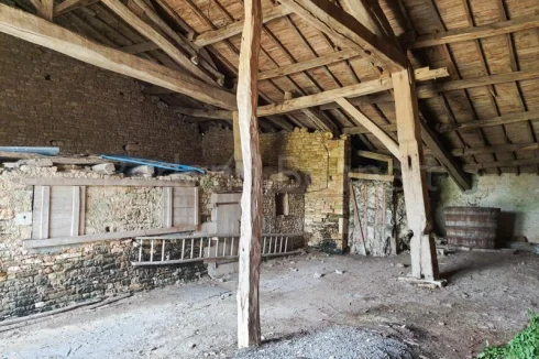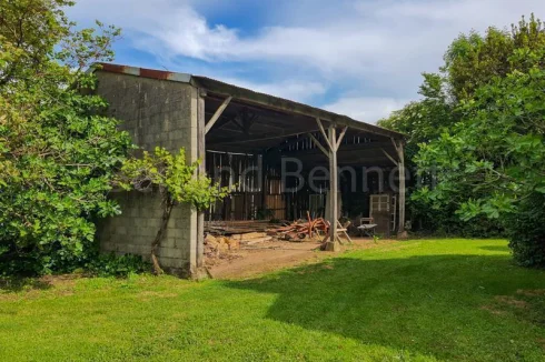 An inviting courtyard with a large barn and a hangar, offering numerous possibilities for conversion – workshop, garage, studio, or storage space.