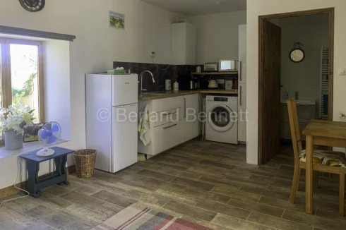Ideal for hosting family and friends or generating income via seasonal rentals, the self-contained studio features a 26 m² living space with a fitted kitchenette and an en-suite shower room with WC.