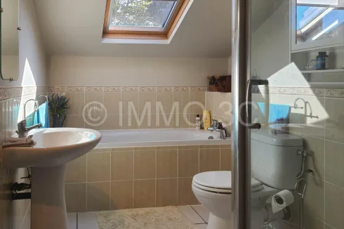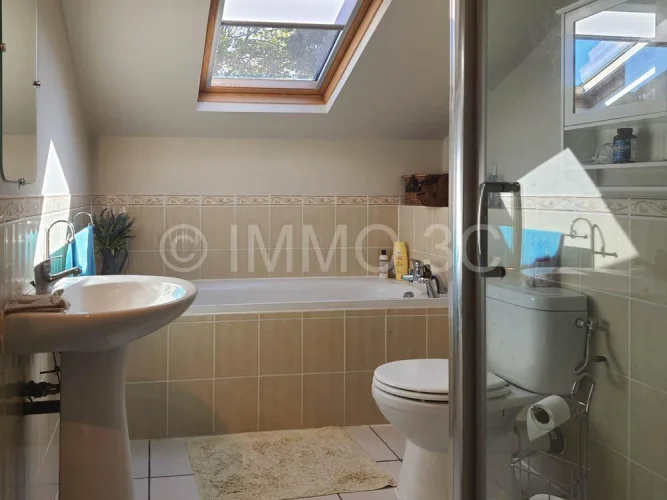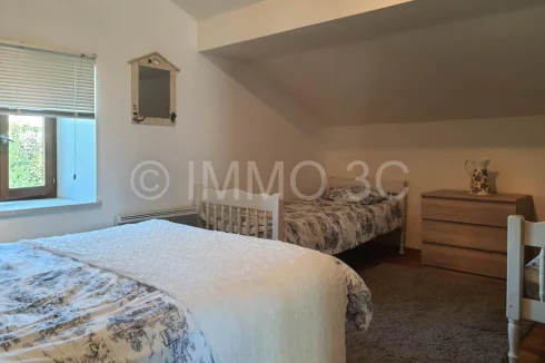 On the ground floor, you'll find a bright 29 m² living room with a fireplace and wood-burning stove, a fully fitted and equipped 12 m² kitchen, and a 14 m² dining room that can easily be converted into an additional bedroom if desired. A bathroom with WC (4.5 m²).