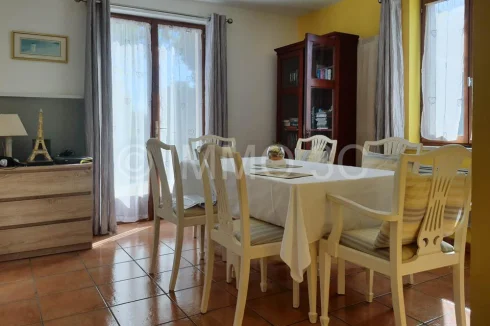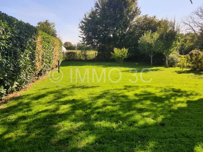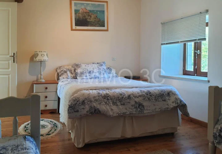The house is equipped with wooden double-glazed windows, a compliant individual sanitation system, and mixed heating (wood and electric).