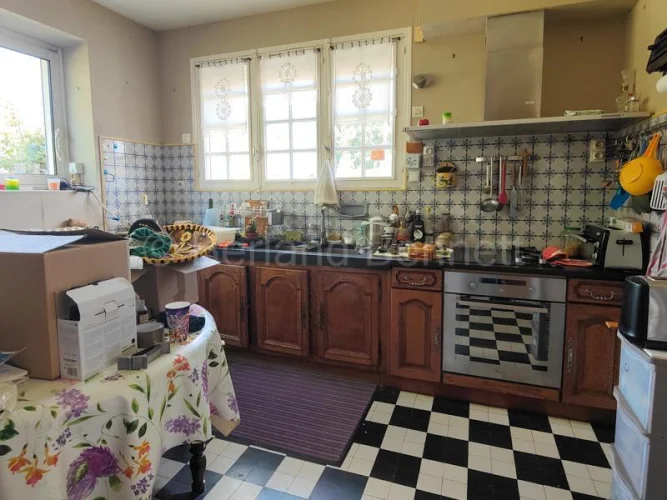 Located in a pretty village with the Charente river, less than 10 minutes from Civray, this spacious stone-built home, dating from the late 1960s, offers 203 m² of living space with generous, light-filled rooms.