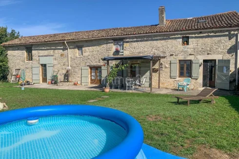 Located on the edge of a peaceful village between Lezay and Couhé, this beautifully renovated stone house offering 131 m² of living space and the potential for further extension, it features generous volumes filled with natural light and an inviting atmosphere.