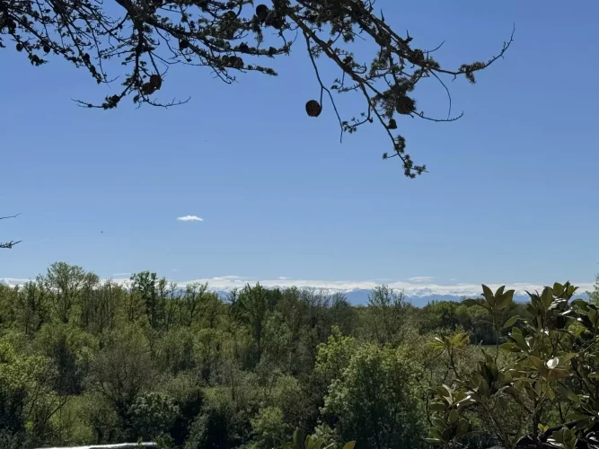 In absolute tranquillity, a private tree-lined driveway leads to the fountain and the foot of the castle, then to a view of the Pyrenees!