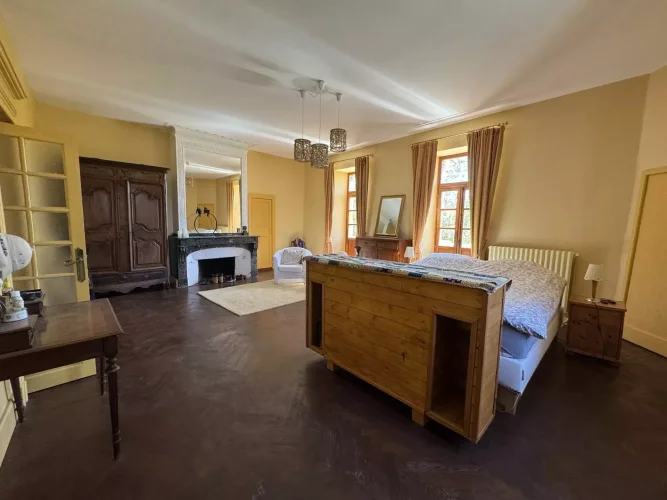 It has four towers (two square and two round), a former stable (also magnificent with its imposing dormer window) of approximately 600 m² including 3 horse boxes, a gym and a workshop, then approximately 300 m² on the upper floor with a very high ceiling, a swimming pool of approximately 5m x 15m and its pool house of approximately 40 m², its adjoining river with water all year round, its fountain and well on its magnificent wooded park, including several paddocks for horses, trees of 500 to 800 years and a flowered and enclosed orchard of 34,124 m².