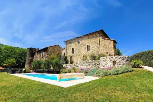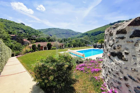 On the heights of the Bassin d'Aveyron, Selection Habitat offers you this prestigious 14th century Chateau. This fortress watched over the trading route formed by the Lot, deterring the warlike intrusions of invaders from distant shores. The current owners have taken pleasure and care to bring this building back to life without removing the soul of this property. It is always a real satisfaction to meet people passionate about history and stone. It consists of 3 bedrooms of 16M², 17M² and 23M², a large separate dressing room, a bathroom with teak flooring, a 45M² living room, a fully equipped kitchen, an office and 2 large reception rooms. The whole building benefits from underfloor heating. Most joinery has been specially created to measure. You can also see beautiful travertine slabs on the ground floor and beautiful chestnut planks upstairs. Outside you will find a very beautiful travertine terrace overlooking a large space with swimming pool all on a plot of land with an area of 1700M². Ideal for a Gite/bed and breackfast project and Opposite the property the owners have created another building of more than 200m2 including 4 identical bedrooms of 26m2 with a relaxation area, bathrooms, WC and a large garage space in the basement. ground of more than 100m2. Another terrace is planned for future buyers if they wish to add a Jacuzzi to this little paradise on earth. Selection Gite will be happy to assist you in this rental project if you also wish.