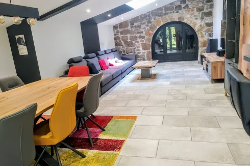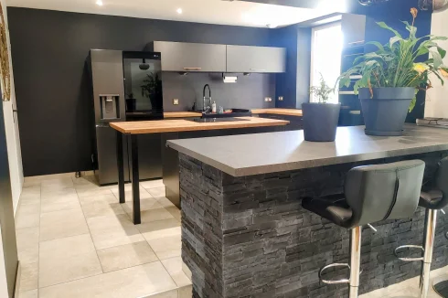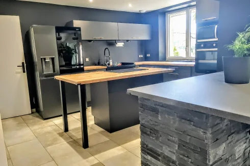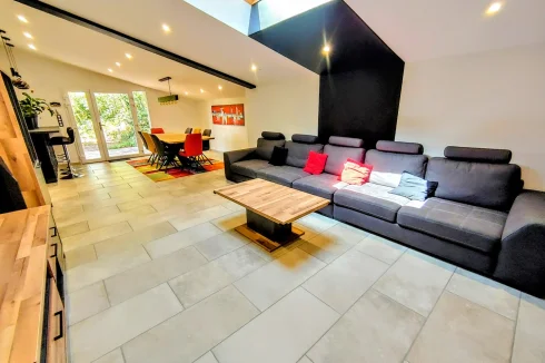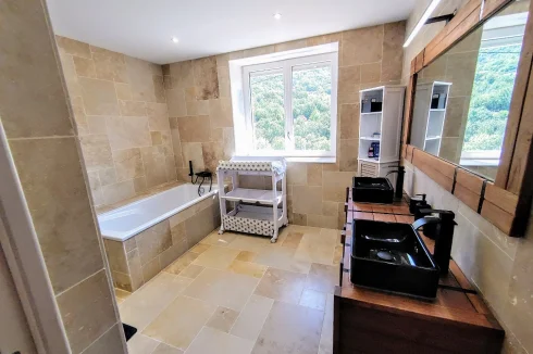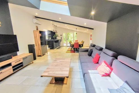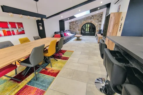 House of 152m², renovated, with beautiful features, located between Saint-Affrique and Lauras. This type 7 house, completely renovated, is on a plot of approximately 1,500m². It combines modern comfort and generous spaces, it is ideal for family life or moments of conviviality. On the ground floor, you will be welcomed by a magnificent living room of 55 m², integrating a lounge and an open kitchen. This level also includes three bedrooms, an office, a laundry room, separate toilets, as well as a travertine bathroom, equipped with a bathtub and a double Italian shower of 200x100 cm. An additional living room of 11.60 m², offering multiple layout possibilities (games room, cinema, relaxation area), completes this space and provides access to a fourth bedroom located upstairs. In the basement, you will benefit from a 55 m² garage, accessible by motorbike and which can be converted to accommodate a car. The house, well insulated, has a heat pump and PVC double glazing with electric roller shutters. Do not miss this unique opportunity to live in a tastefully renovated house, offering quality services. Information on the risks to which this property is exposed is available on the Géorisques website: »