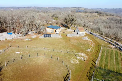 Selection Habitat is pleased to present an incredible and unique location on the Saint-Chels causse. At the end of a 500-meter-long driveway, a breathtaking view awaits you, a fabulous 270° panorama. The 8 hectares, all in one piece, are composed of meadows, woods, and coppices, entirely enclosed by a sturdy fence and connected to a solar battery to protect a livestock farm and plantations, such as these 10,000 saffron plants to be cultivated on site. Attention, Robinson Crusoe of the causses! It is possible to live autonomously thanks to the photovoltaic panels that develop 3 kW, as well as the presence of a water tank. An old stone sheepfold, registered and in very good condition, and a small wooden cabin to be moved to a more shaded area invite the dream that everyone has had one day: living peacefully while contemplating nature at sunset. On the land, you will also find two wooden shelters for sheep or ewes with fenced areas. As you will have understood, this is a timeless place, unique for its dominant position and its panorama. A site from which you will not return! Drone video on request Information on the risks to which this property is exposed is available on the Georisques website: »
