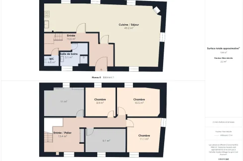 In the quiet of a small village, this large 197m² house will delight its future owners. Ideally located between Brioude and Issoire, just 4km from all amenities, it consists of two independent dwellings that can be rented out to generate a good return. It could also become a primary or secondary residence with the added bonus of the one-bedroom apartment generating rent to reduce the owner's expenses. On the ground floor, an entrance hall opens onto a large 16m² kitchen opening onto a spacious living/dining room (34m²). The rooms on this level are dual-aspect, south-facing, making them very bright. A wood-burning insert provides additional heating for these spaces, in addition to a recent oil-fired boiler, which is a plus for those who appreciate the gentle warmth of a wood fire. Still on this level, you will find a shower room, a separate toilet and you will access the first floor by a wooden staircase leading to 5 bedrooms of respectively: 9, 9.5, 11.5, 11.5, 11.5m². Many works have recently been carried out, the roof was completely redone in 2017, the lost attic is insulated with 40cm of cellulose wadding, a majority of joinery is double-glazed and the property is connected to the sewerage system via a separate network. This house has been restored by also creating a beautiful one-bedroom apartment of 65m² on the lower level, consisting of a 13m² kitchen, an open-plan living/dining room of 20m², a shower room and a separate toilet as well as a large 17m² bedroom, all on one level. This apartment constitutes a rental income either seasonal (AirBnb) or long-term. Finally, the house also has two large vaulted basements of approximately 60m² allowing the creation of a workshop space or simply storage. You can visit all levels of the house thanks to the virtual tour linked below: Information on the risks to which this property is exposed is available on the Georisques website: »