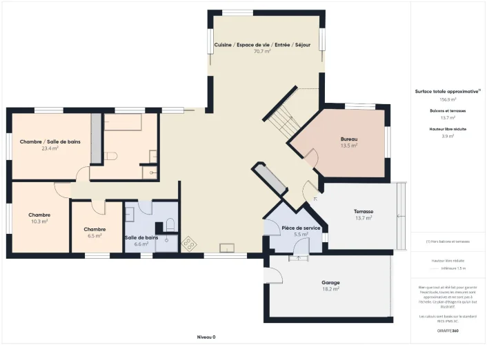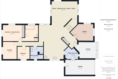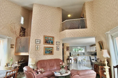 First photo, it is a projection. House of 190m², with a beautiful living room of 68m², which includes a living room of 8 meters under ceiling on one part, which gives it a loft spirit. On the ground floor you have two bedrooms, a bathroom and a shower room with toilet, a storeroom, a laundry room and an office. Upstairs a small living room serves three bedrooms and a bathroom and toilet. In addition there is a garage and two parking spaces. This house is located 3 minutes from the halles des 5 Cantons, 10 minutes from the center of Biarritz, and 5 minutes from the beaches of the Chambre D'Amour. Renovation work to be expected, floor, wall, bathroom. There are two photos of the living room of 68m² which are a projection, the initial photo being the first in the series.