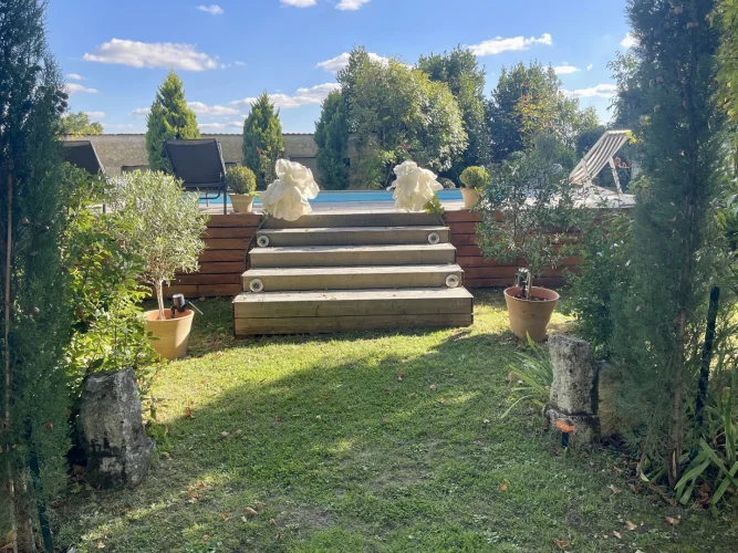 Magnificent Maison de Maître, lovingly renovated to preserve its original charm, located just 5 minutes from Saint Jean d'Angély, a historic town with all shops, schools and a twice-weekly market The beach is less than 40 minutes away, offering quick access to the sea. This very elegant house has a beautiful entrance hall with fireplace, a living room and a dining room, both with marble fireplaces and a large kitchen with central island. The kitchen opens directly onto the dining room but you can close it off with a sliding door. A bathroom with WC completes the ground floor. Upstairs, you will find 4 large and beautiful bedrooms and a shower room. One bedroom can easily be converted into a shower room if required. This is a warm, authentic house, elegantly combining old-world charm with modern comforts. No work is required, so you can move in straight away. Double glazing throughout and gas-fired heating provide comfort and a good energy balance The beautifully landscaped, well-kept garden is a haven of peace. Planted with trees and fully enclosed, it features an above-ground swimming pool and a large open barn ideal for entertaining guests. The views over the fields are breathtaking, especially when the sun is shining. Plus... Large outbuildings, two vehicle entrances, orchard Don't delay in discovering the charm and authenticity of this unique property.