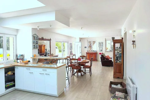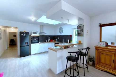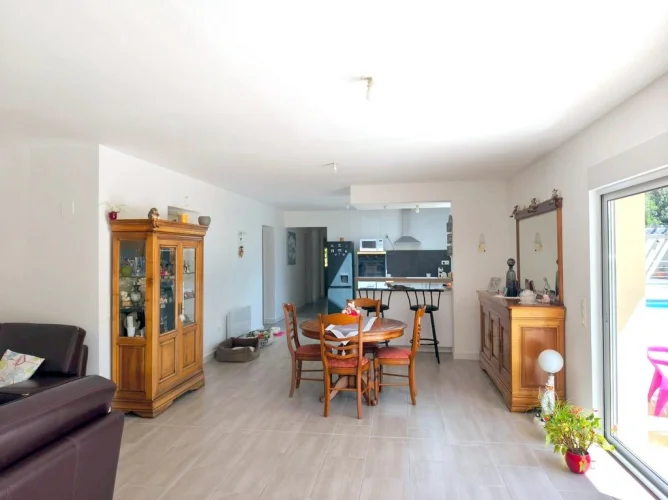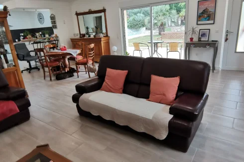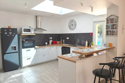 Exclusively a few minutes from Moissac in the heart of a village but in a quiet area we offer you this very beautiful brand new house (2 years old) very bright, in the middle of a magnificent landscaped garden decorated with a pretty swimming pool. This single storey house has five rooms, including three bedrooms, a fully equipped kitchen, open to the living room, a bathroom and a laundry room. No work, you just have to put down your suitcases. It is waiting for you, its new owners. Outside you can enjoy two terraces, one of which is covered near the swimming pool. It also has a double independent garage for two vehicles. No work required. Selection Habitat Montauban Agency Jean-Guy Besnard and Francine Cabos