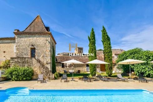 TRIANGLE D'OR | TOSCANE OCCITANE - Located in the Tarn region, in the surroundings of Cordes-sur-Ciel, this 19th century property is set in approx. 5,000 m² of grounds and offers more than 800 m² of living space, combining period materials with tasteful renovation. The main house, with around 300 m² of living space, features stone walls, exposed beams, terracotta floor tiles and a large living room with an open fireplace. The ground floor also includes a separate kitchen, a study and a dining room for breakfast for guests staying in the chambres d'hôtes. When the weather is nice, this area naturally opens out onto a terrace at the back of the house, offering views over the park and swimming pool. Upstairs, four spacious bedrooms overlook the grounds, complemented by a bathroom and two utility rooms. The attic space, which has not yet been converted, has the potential to provide over 150 m² of additional living space. The property is ideally suited to hosting guests and visitors. The outbuildings are home to five guest rooms, arranged around a common area comprising a lounge, kitchen and dining room. Three independent gîtes complete the offering: two two-bedroom accommodations (68 m² and 58 m²) and a three-bedroom 100 m² gîte. For events and receptions, a recently built 80 m² hall with large industrial workshop-style windows opens onto the courtyard. Bright and contemporary, this extension blends in perfectly with the rest of the buildings. Outside, a large covered terrace is ideal for outdoor events and dinners, with direct access to the 5 x 10 metre heated swimming pool, nestled in the heart of a beautifully maintained garden. A dovecote awaiting renovation can be converted into a studio, suite, relaxation area or office, and benefits from an extended view over the surrounding countryside. The property, which is regularly used for weddings, seminars and holiday breaks, represents a real opportunity for a person who is keen to combine a sense of heritage with contemporary comfort, space and unspoilt natural surroundings. VIRTUAL TOUR AVAILABLE For any additional information or to organize a visit, please do not hesitate to contact us. Frederic BASTEMEIJER Agence Hamilton Cordes-sur-Ciel, one of the Plus Beaux Villages de France WE ALSO SPEAK ENGLISH | WE SPREKEN OOK NEDERLANDS