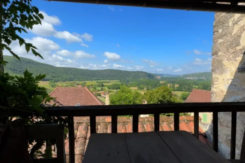 We are proud to present a property in an exceptional location in the medieval village of Calvignac, perched high above the River Lot, overing magnificent panoramic views over the river valley with the Chateau of Cenevieres in the foreground and the cliffs of the famous village of St Cirq Lapopie as the backdrop. The 15th century property comprises a spacious 3 bedroom house, with super facilities, but also an attached habitable annex. As soon as you enter the private courtyard bordered by mature shrubs, you will be amazed by the mesmerising views from the covered dining terrace onto the western River Lot valley. Whether you enter via the main front door or the door from the covered terrace, you will be greeted by a vast living space of 55m2, comprising a cosy winter living room with its inglenook wood burner fireplace, a comfortable summer day room which leads to the terrace and the dining room ( with another inglenook and wood burner) which opens onto a super traditional kitchen (approx. 10m2) with handmade oak worktops and butler's sink the kitchen also has its own half-glazed door to a separate medieval cobbled courtyard and a covered log store. Upstairs there are 3 good sized bedrooms (15m2 to 21m2) each having their own shower or bath and a hand basin. There is one WC at this level and an additional shower room/WC at ground level with an adjacent cloak/store room. The annex has unlimited potential, given its current basic kitchenette and shower room facilities, to create additional independent accommodation for friends and family or, an office, or could even over the possibility of its own income providing rentable space, B B or similar. Finally, the spacious basement (40m2) and a laundry room (6m2) are accessible from either an outside stone stairway or an arched medieval double doorway directly from the street below, and with its full headroom, offers great potential for storage and/or a workshop. The property has not only been structurally renovated in the past, but has also been consistently updated to ensure that we offer you today a property with immense charm that is both traditionally authentic, and offers you modern and aesthetic features, all topped of by the most amazing view on to the river valley.