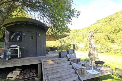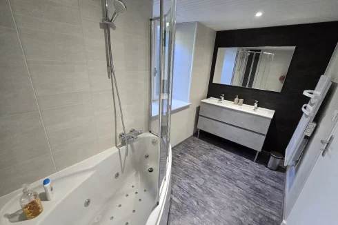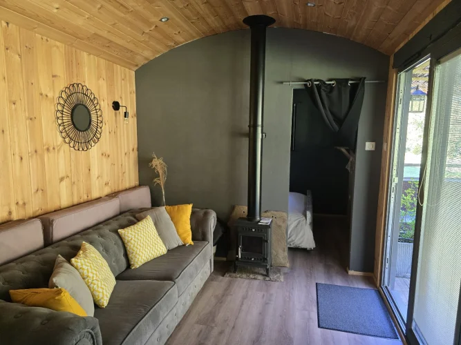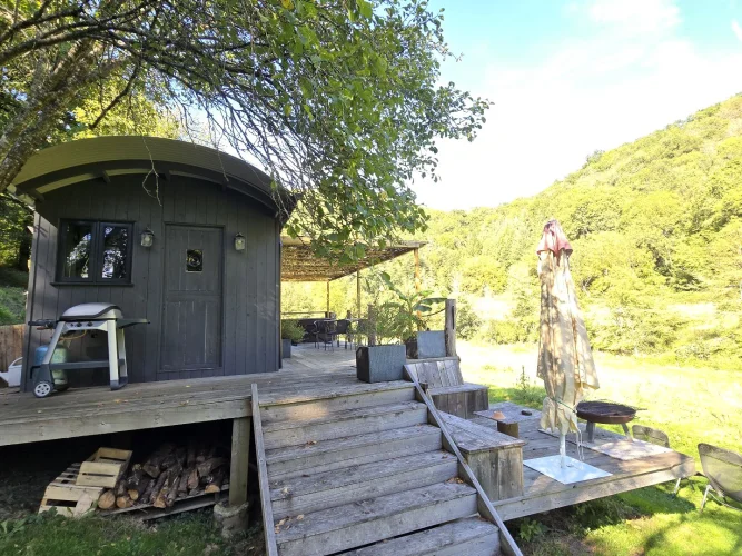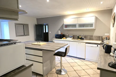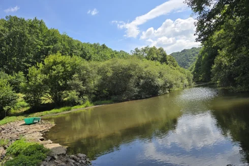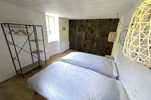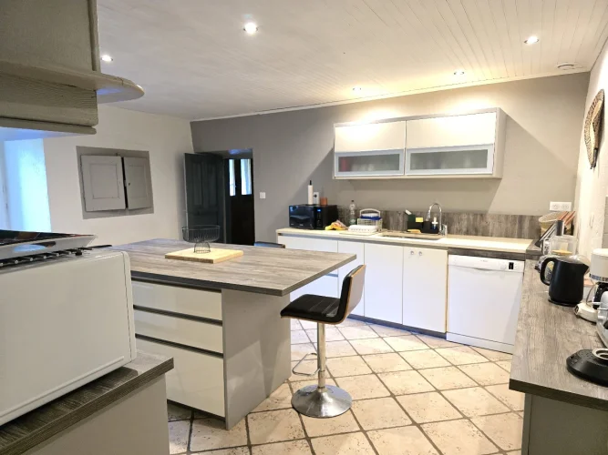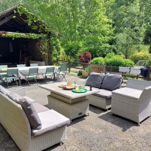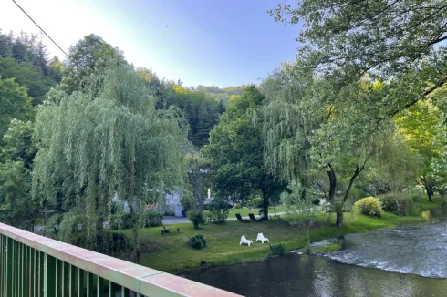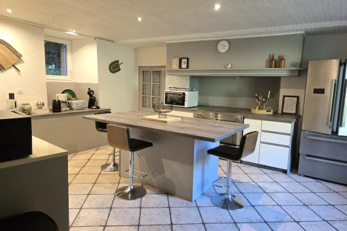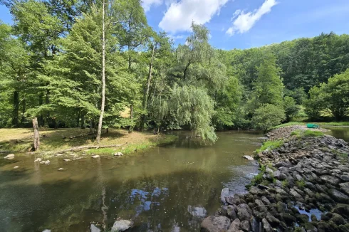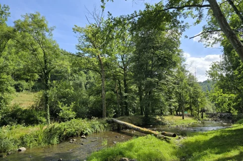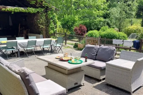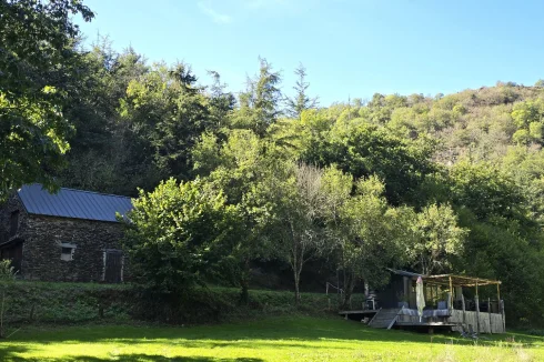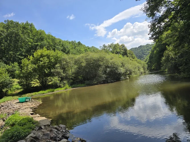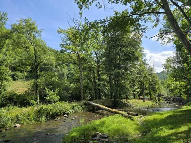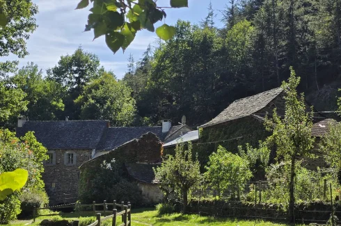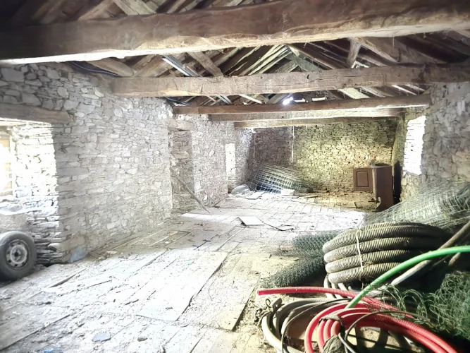 Located in the heart of a valley, quiet and not overlooked, old mill from the 15th century with water rights and a millrace on the river, composed of a house of 200 m², as well as a tiny house as a gite and its 3 barns which could be converted as well as an outbuilding with bread oven. The adjoining complex with 4 Ha of meadows around the property on the edge of the river and its 18 Ha of woods composed of several species such as oak, beech, poplar, Douglas fir, American oak, pine, spruce... The old mill welcomes you with its entrance hall with to its left the large living room/lounge of more than 65 m² with its bay window at the end. In the middle stands a wooden insert which rests on the old millstone. Amidst the beautiful traditional parquet flooring, there's a safety glass panel offering a beautiful view of a vaulted ceiling and the river. At night, spotlights will enchant this view and dazzle your guests. The gentle lapping of the water will lull and soothe you. From the sofa, a second view is offered to you through the arched stone opening, where you can observe the river along its length. At the far end of this room is a bathroom with a toilet. Given the size of the room, some might imagine creating a master bedroom on one level. To the right of the entrance, the dining room with its brand new, equipped open-plan kitchen offers plenty of storage space, and its large central island will allow you to dine around it. Continuing on, carved into the nascent rock, is a superb cellar/pantry for storing provisions and aging your wines. A staircase provides access to the upper floor. In the middle of it, a landing leads you to a shaded country terrace overlooking the stream and offering a beautiful view of the surrounding nature. Upstairs, 4 spacious bedrooms, one of which could be split into two. A room of more than 20 m² can be used as a games room, relaxation room, sports room, dormitory, office... Adjoining it, a small space as a dressing room, storage room, new bathroom or other. To complete this level, a bathroom and a separate toilet. Outside, in front of the entrance, a courtyard bordered by 2 barns and opposite another stone building which houses a super functional bread oven. The barns will allow you to tinker, store firewood, shelter your vehicles, cars, tractor, quad, camper, boat... and if you have more ambitions you can set up cottages or guest rooms. Not far away, a tiny house with all mod cons with a living room with its equipped kitchen, a bedroom and a bathroom with toilet. At the front, a large covered terrace with a more cozy half-level around a fire pit. At the back, a third barn, perhaps for another project around well-being and relaxation or an artist's studio? The water and electricity supplies have been anticipated!