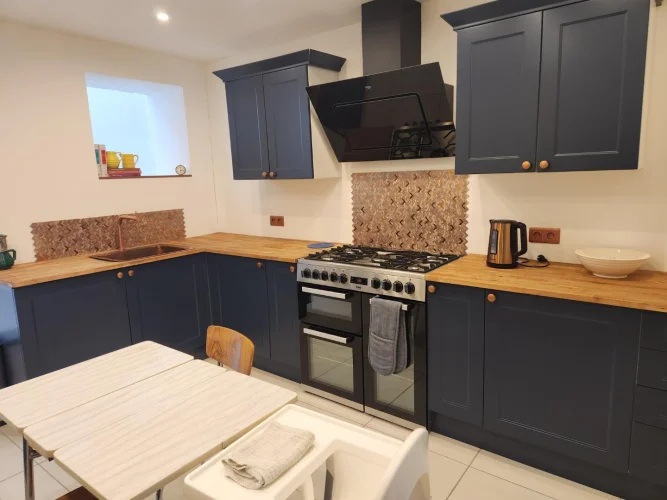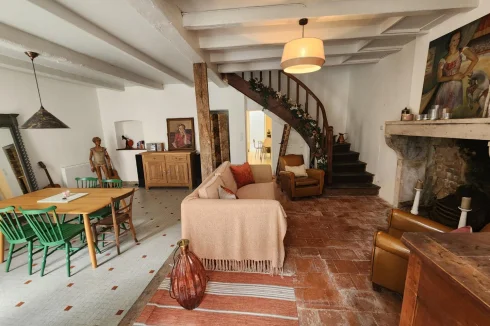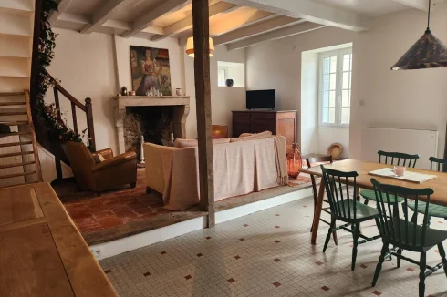 Abzac - Clare Rogers, a local agent, presents a renovated house with separate garden and garage. The house has been renovated to a high standard and has a twist of old and new. The village has some amenities, shop, hairdresser and post office. Close to Availles Limouzine,Confolens, Bellac and L'isle Jourdain with shops, retaurants, hospital, schools and other amenities. The house has a new roof, main drains, double glazing, elelctic radiators and modern new kitchen. On the ground floor is a large dinning area and sitting room with open fireplace, and stairs Large kitchen with modern units, tiled leading out to a storage area or area for storage. Upstairs two large bedrooms with orginal flooring, radiators. Fabulous arty bathroom with shower and bath. Near to the house is a garage for one car or a great storage space. Close hedged garden with lawn (370m), ideal for a entertaining, space vegatable patch or just relaxing.