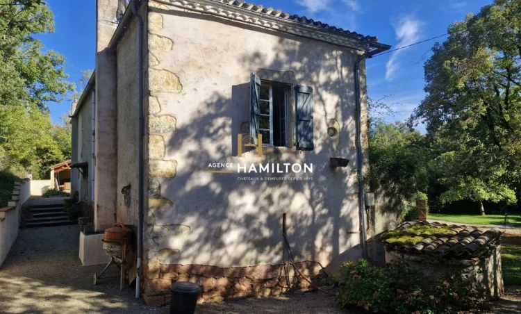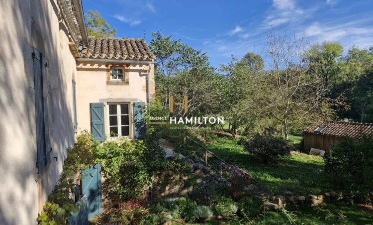 Highly unusual and full of charm, this stone country house welcomes you into a green setting, bathed in light thanks to its south-facing orientation and lulled by the gentle murmur of a nearby stream. With 172 m² of living space spread over three floors, approximately 4,500 m² of wooded grounds, an outbuilding and a well, it offers a rare and privileged living environment. The property is accessed via a small bridge over the stream, before revealing a poetic park, shaded by a majestic lime tree and a remarkable catalpa tree. The house has three separate entrances, adapting to all lifestyles. • On the ground floor, a hallway leads to a cellar, a bathroom and a first bedroom of approximately 15 m². Opposite the entrance, a beautiful solid wood staircase leads to the first floor. • On the first floor, there is plenty of space for socialising: a large living room of around 30 m² with a wood-burning stove and a south-facing porch, ideal for enjoying a coffee in the sun. Adjacent to this is a fitted kitchen and a living room measuring approximately 40 m², also equipped with a wood-burning stove, which opens onto the garden through large French windows, providing a bright and comfortable living space with a view of nature. • On the upper floor, the sleeping area offers a relaxation area, a spacious bedroom of approximately 25 m² with an adjoining study, a shower room and a convertible attic. Outside, almost half a hectare of greenery, a garage-workshop of approximately 28 m², a well steeped in history and absolute tranquillity complete this idyllic setting. A rare property for lovers of peace, nature and authenticity, just 40 minutes from Albi and Gaillac, 10 minutes from Cordes-sur-Ciel, 20 minutes from Saint-Antonin-Noble-Val and 15 minutes from Cordes railway station. The house is in good general condition and very well maintained, equipped with two wood-burning stoves, electric convector heaters and single-glazed windows. The drainage system needs to be replaced. Your dedicated contacts, Jean-Philippe GRENIER and Frederic BASTEMEIJER Agence Hamilton Cordes-sur-Ciel, one of the Plus Beaux Villages de France (WE ALSO SPEAK ENGLISH | WE SPREKEN OOK NEDERLANDS)