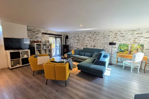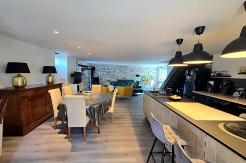 Discover this charming stone house of 169m² of living space and its adjoining garden of approximately 340m². The house consists of a tastefully renovated 62m² kitchen/living/dining room area on the ground floor as well as a toilet. The pellet stove, easy to maintain and use on a daily basis, will allow you to spend lovely evenings by the fire! You have access to the outdoor space consisting of a beautiful 52m² tiled terrace for sunbathing, barbecues or other activities as well as to the garden to enjoy the greenery! On the first floor, two bright bedrooms of 26.9m² and 19.7m² in master suites will seduce you with their space and layout: each with its own shower and double sink! A toilet completes this level! On the top floor, you will have the possibility of exploiting the attic space with a surface area of 53.4m²: why not create two additional bedrooms as well as a bathroom? A bedroom, a relaxation area, a bathroom? Let your imagination run wild! The renovation of this building with beautiful stones has been done with taste, giving it a charm that will not leave you indifferent! Whether you have a project for a main residence, or a secondary one, this house will adapt to your projects, in particular by the exploitation of the attic space! The property is located in a town with a bar/brasserie for your friendly/family reunions, not far from the lakes of Pareloup and Villefranche-de-Panat, and therefore less than 10 minutes from all amenities! A school is located on site, a traveling baker will bring you his fresh bread directly! The renovation is recent: electricity from 2019, pellet stove from 2023, double-glazed PVC joinery, glass wool insulation, connected to the sewer system, fiber present in the village. Do not hesitate to contact us for more information, this house is waiting for you! Virtual tour available Information on the risks to which this property is exposed is available on the Georisques website: »