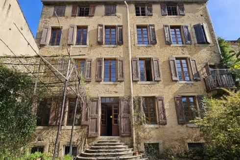 Located in the heart of the village of Chalabre, this historic 17th-century property, a former presbytery, extends over five levels with a usable surface area of 944 m². It offers great potential for a variety of projects: family residence, tourist accommodation, shop, restaurant, or housing development. In the basement, a 200 m² stone slab cellar opens onto a 1,355 m² enclosed garden planted with century-old trees, featuring a well, a vegetable garden, and a chicken coop. On the ground floor, a wide hallway leads to a garage and three large rooms suitable for receptions or commercial activities, with direct access to the garden. The first floor includes a living room, a kitchen, a dining room, two large bedrooms, a dressing room, and a bathroom. The second floor offers four to five bedrooms as well as a large 72 m² room to be converted. The top level has a 200 m² floor space that could be used to create additional rooms or apartments. An annex building of approximately 60 m² in the garden offers the possibility of creating an independent dwelling. Plans available upon request. Technical characteristics: redone framework, double glazing (old), wood-fired central boiler, garage, stone walls. Property offering both the charm of the old and numerous renovation prospects. Information on the risks to which this property is exposed is available on the Georisques website: »