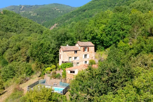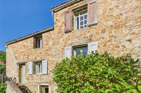 Rare product! Exclusivity: Stone country house in an exceptional setting with panoramic views and a swimming pool, less than 2 hours from Montpellier You sure will fall in love with this magnificent stone house, a true haven of peace nestled in the heart of the River Tarn Valley, less than 2 hours from Montpellier. At the end of a private cul-de-sac with no close neighbors, it offers absolute peace and privacy on a plot of over 1.7 hectares. From the moment you enter, you'll be captivated by its warm atmosphere and characterful features. The house is spread over three levels. On the ground floor, discover a large, bright living room with its alcove and a south-facing balcony, offering breathtaking views of the mountains of the Grands Causses National Park. A reading / TV room with a fireplace invites you to relax. Upstairs, two large bedrooms, one with its own terrace, share a bathroom. The lower level consists of a kitchen, a laundry area and a beautiful dining room with direct access to the terrace. The exterior is a true reflection of the property: a terrace with its old bread oven, ideal for summer meals, a small outbuilding serving as a pool house, and a swimming pool nestled in lush greenery. The adjoining land, faithful to the region's landscape, guarantees absolute serenity and requires little maintenance. Ideal for a relaxing weekend, a vacation with family or friends, or for year-round living (retired or self-employed), this property also offers great potential for seasonal rentals (Airbnb-style). A real favorite for lovers of peace and quiet and nature. DPE and other energy surveys are currently in progress. Individual sanitation needs to be brought up to standard. Virtual tour + interior plans available upon request. Information on the risks to which this property is exposed is available on the Géorisques website: »