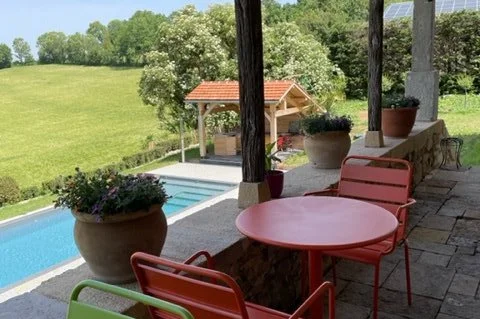 Exceptional property near Figeac. The Hamilton agency is pleased to present this remarkable property: an authentic fortified house from the 17th century, completely and carefully renovated. With its 600 m² of usable space, including more than 400 m² of living space, this exceptional property offers generous volumes and a functional layout: • Ground floor: large entrance-library, large living room combining kitchen, living room and dining room, as well as a master suite with office. • Upstairs: a second master suite with a children's bedroom on the mezzanine (installed in the dovecote), a large multipurpose room (storage, games room or possible additional sleeping), as well as two very large en-suite bedrooms located in an adjoining building on two levels. Two exterior galleries enliven the facades: • to the east, entrance side • to the west, overlooking the swimming pool and offering spectacular sunsets to lovers of relaxation and contemplation. The architecture, typically Quercy, highlights the facade with stone steps, covered gallery and the traditional dovecote (the estate was also listed in Maisons paysannes by Alfred Cayla). Located in the heart of a 7,000 m² wooded park, the property includes a well, a vegetable garden, fruit trees, an old pig stable with greenhouse, a garage converted from the old barn and a magnificent swimming pool. The quality of the renovation is remarkable: high-end services, no work required, including the individual sanitation which has just been completely redone. Heating is provided by several heat pumps (air-water and reversible air-air), guaranteeing comfort and energy performance (DPE in progress, available within two weeks). Currently operated as a bed and breakfast, this residence could just as easily become a prestigious and welcoming family home. This property, which combines authenticity, character and contemporary comfort, is located in a peaceful hamlet just 8 km from Figeac, in the heart of a region that is both touristy and economically dynamic.
