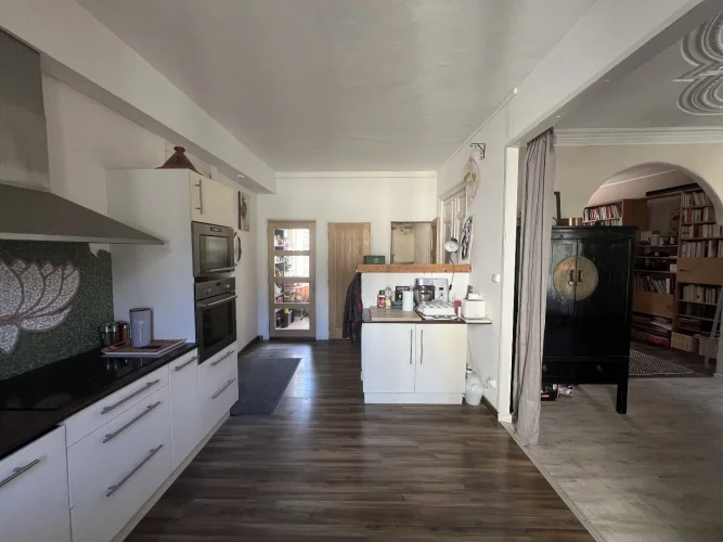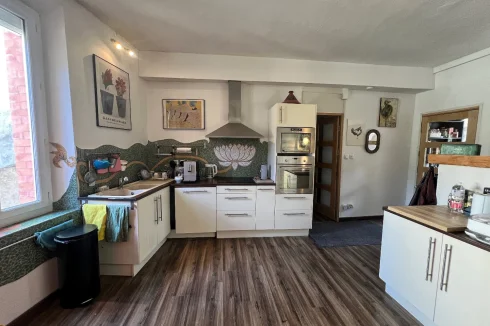 Step into the heart of Berlou, a tranquil wine-producing village nestled among vineyards and rolling hills, and discover a unique property brimming with charm and history. This spacious two-story house offers the perfect combination of character, comfort, and potential for those seeking a quiet village lifestyle without sacrificing access to amenities. Originally serving as the village hotel, this property has welcomed guests for generations, with rooms upstairs and a restaurant on the ground floor. Since being converted into a private residence, it has been thoughtfully updated in parts while still preserving many original features, including exposed stone walls, wooden beams, and generously proportioned rooms. Main Floor (Living Area): - Fully equipped kitchen, ideal for preparing family meals or entertaining friends. - Dining room with crown molding and access to a small balcony with a beautiful view of the surrounding hills and forest. - Spacious living room perfect for relaxing after a day exploring the countryside. - Bedroom and bathroom offering comfort and style. Second Floor: - Two bedrooms, one featuring a mezzanine for additional space or flexibility. - Bathroom with modern fittings. - A large versatile room with potential for additional bedrooms, a family lounge, or studio space. Ground Floor: - Two substantial rooms (56 m² and 40 m²) ready for renovation. - Previously the hotel restaurant and later an art gallery, these spaces could easily be transformed into a self-contained apartment, extended living area, or professional studio/workshop. - Small courtyard passage providing access to storage. Berlou offers a peaceful, authentic village lifestyle with beautiful walking trails and open countryside just minutes from your door. Meanwhile, Saint-Chinian—with its weekly markets, restaurants, cultural events, and renowned wines—is just a short drive away, ensuring convenient access to local amenities and social life. Excellent Location - 40 minutes from Béziers (airport, train station, Mediterranean beaches). - Just over 1 hour from Carcassonne, home to its famous medieval cité. - Approximately 1 hour from the stunning Lac de la Raviège, perfect for swimming, watersports, or summer relaxation. This property represents a rare chance to acquire a home with genuine character, thoughtful updates, and incredible potential for expansion or renovation. Whether as a comfortable family residence, holiday home, or rental investment, it's ready to welcome its next chapter in one of Southern France's most charming regions.