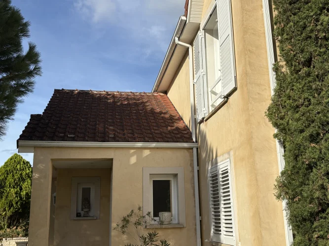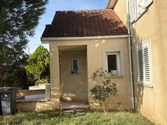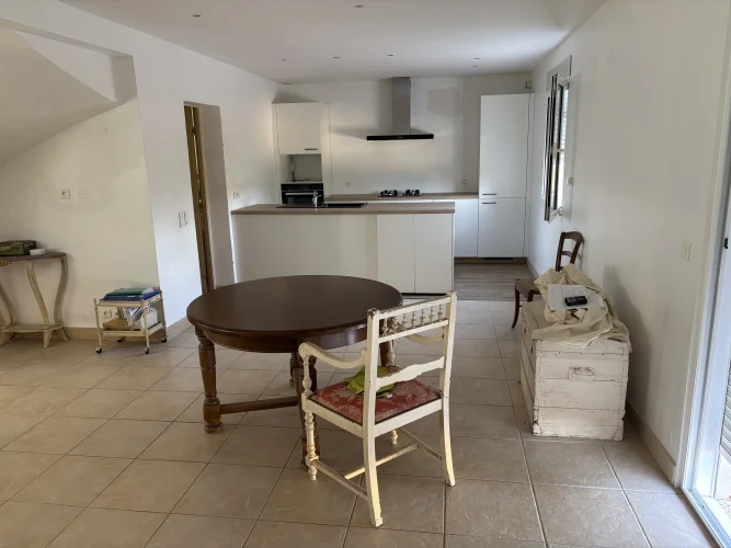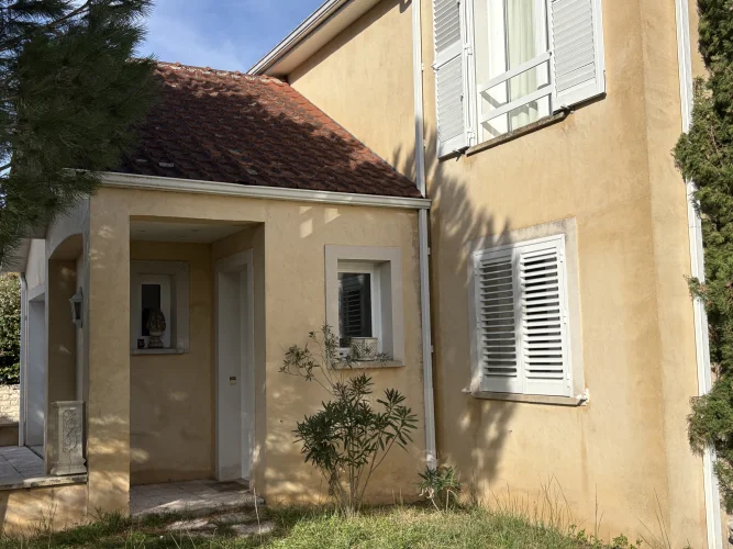Nestled in a haven of peace, this magnificent 2002 house offers an exceptional living environment, sheltered from prying eyes. Upon entering, you'll be captivated by its magnificent mezzanine overlooking the living room via an exceptional staircase, creating a unique atmosphere. The house features a new kitchen and three bedrooms, including a master suite with a dressing room and whirlpool bath, perfect for moments of pure relaxation. The property also boasts a spacious 45 m² terrace, ideal for al fresco dining. The land is suitable for a swimming pool, and thanks to a wall that lends itself perfectly to this, you have the option of creating a barbecue and a pool house in complete privacy. Completely private, the garden is beautifully planted and fenced. For added comfort, the house is equipped with electric roller shutters and aluminum shutters. A one-car garage and a storage room complete this property. This exceptional property, combining tranquility, privacy, and quality amenities, is a rare opportunity. Don't miss out on discovering this unique place, which could well become your future home. Information on the risks to which this property is exposed is available on the Georisques website: »