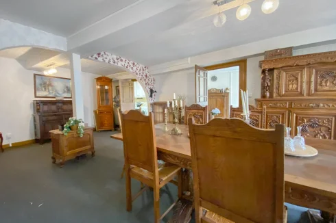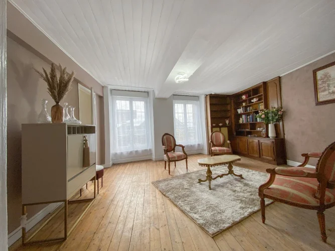 This imposing and spacious stone house located in the heart of Gorron has three separate entrances, each leading to one of its three floors which are also connected by an internal staircase. This property could therefore constitute a base in Normandy for a large family or be easily converted into three separate apartments, which would make it suitable for a holiday rental business. Thanks to the large window in its entrance hall and its location, the first level of this property would also be ideal for a commercial establishment. In addition to a large cellar accessible from the outside serving as a crawl space and a vast attic, it comprises: Level 1: a large entrance hall leading to a kitchen and a spacious living space with two windows Level 2: three large rooms and a bathroom Level 3: three large rooms and a shower room. Its original wooden floors are in good condition on all levels and it has just been fully rewired. A property with great potential ideal as a large family home or a holiday rental business.