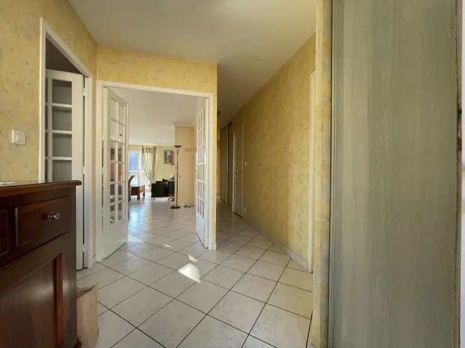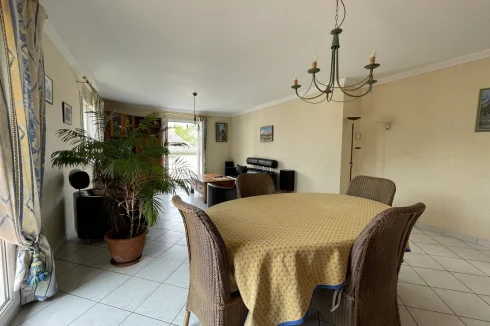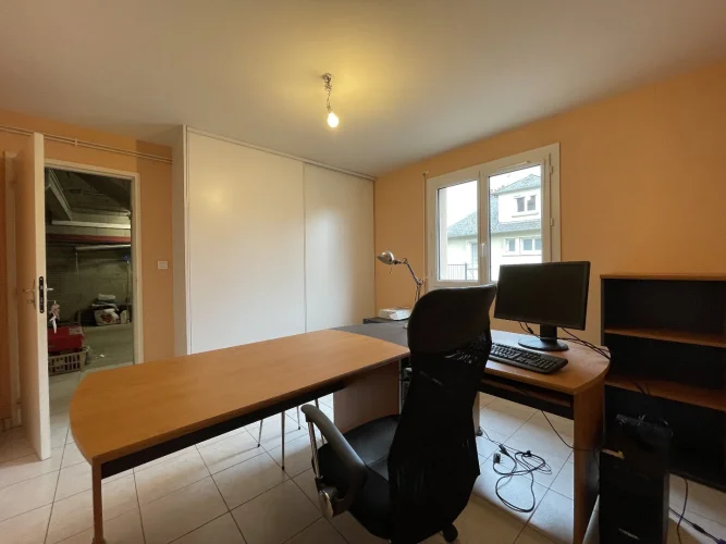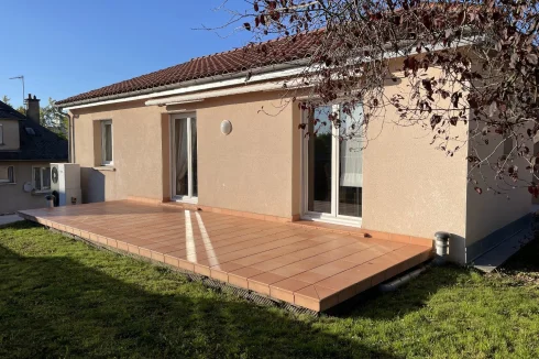 Beautiful single-story house with full basement On the ground floor you will discover an entrance hall with storage then the fully equipped kitchen opening onto a tiled terrace of over 20m² with electric blind, very bright living room of over 35m², 3 bedrooms, bathroom, separate toilet, hallway with storage. In the basement office, laundry room, cellar and large garage. This house is very energy-efficient as it is classified B with a Vaillant heat pump circulating water through the ground controlled by independent thermostats, it also has a central vacuum system making cleaning easier for you... Fully fenced land with automated entrance gate with intercom for your security.